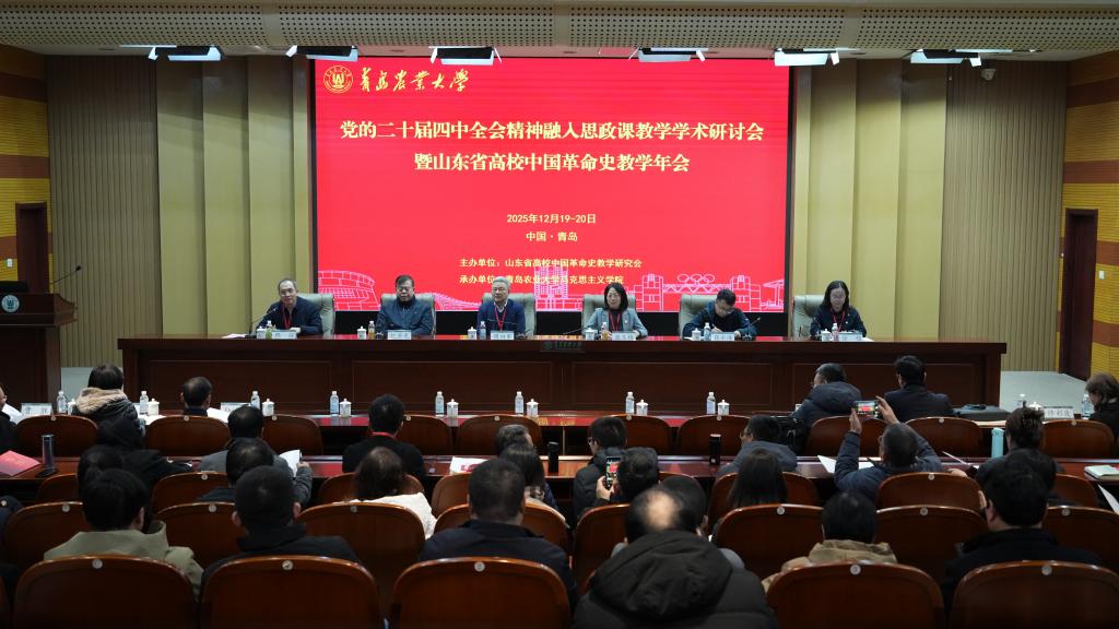 12月20日,由山东省高校中国革命史教学研究会主办,青岛农业大学77779193永利集团承办的“党的二十届四中全会精神融入思政课教学学术研讨会暨山东省高校中国革命史教学年会”在青岛农业大学顺利召开。77779193永利集团陈国庆教授、新时代国企党建协同创新中心成员李璐博士等一行七人受邀参加会议。