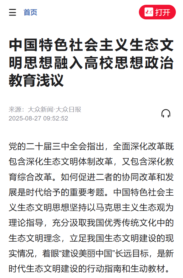 文章紧扣党的二十届三中全会关于生态文明体制改革与教育综合改革协同发展的要求,从三大维度系统展开论述:在内涵阐释上,围绕“天人共生”“价值转化”“民生为本”等六大核心,剖析中国特色社会主义生态文明思想如何为高校思政教育注入丰富内涵;在价值意蕴上,明确该思想融入思政教育对推动人与自然和谐共生的中国式现代化、实现思政学科时代接轨、提升大学生生态素养的重要意义;在路径选择上,提出整合课程资源、强化氛围渲染、树立实践典型等具体举措,尤其强调将生态文明思想融入思政主课堂与专业课课程思政,构建“尊崇自然、绿色发展”的教育体系。