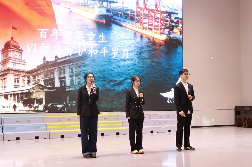 聘任仪式结束后,青·理宣讲团成员王坤、董凯月、王洪斌以“铭记青岛战史 传承家国精神”为题进行主题宣讲。他们分别从“一战遗址”的历史记忆、革命先辈的英勇事迹、当代奋斗的鲜活故事三个部分回望青岛百年沧桑历程,引导在场青少年学生从历史与现实的交汇中汲取奋进力量。“星火领航员”的“现场教学”赢得了在场师生的热烈掌声。