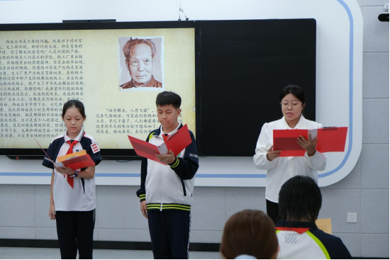 “抗战是我们伟大的母亲,她正在产生新的中国、新的民族、新的人民。”“我们要在战争环境中受到锻炼,我们要在敌人的炮火下壮大起来。”一句句家书誓言的领读,正式拉开了思政课的帷幕。思政课聚焦抗战英雄王孝慈的英勇事迹,通过分学段领读、事迹讲解互动分享等形式共同感受抗战精神穿越时空、叩击心灵的力量学生们在领读环节后纷纷表示:“革命英雄即便与家人天各一方,字里行间仍是国家安危重于泰山的坚定信念令人动容。”