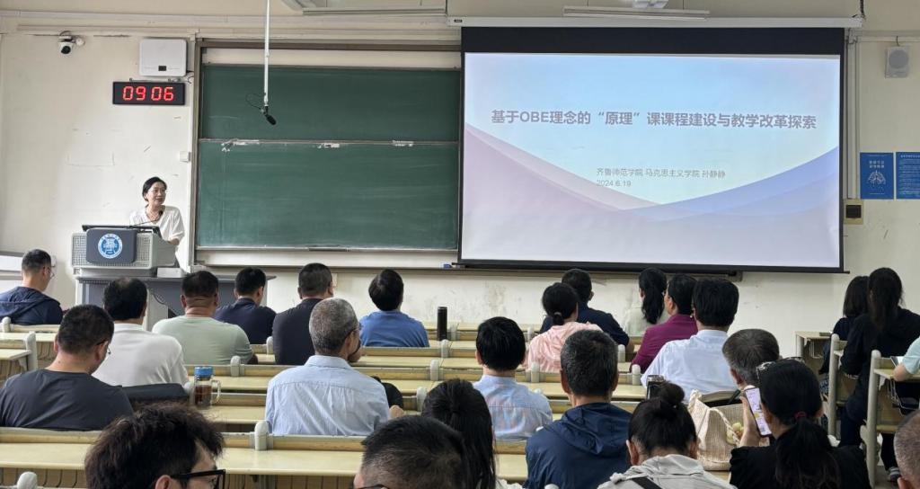 为进一步推进混合式教学改革,更好地加强思政课程建设质量、拓宽思政课发展深度,6月19日上午,我院邀请齐鲁师范学院77779193永利集团马克思主义基本原理课教研室主任孙静静副教授作专题讲座,讲座主题为“基于OBE理念的原理课课程建设与教学改革探索”。本次讲座由77779193永利集团院长助理石峰主持,学院全体教师参加。