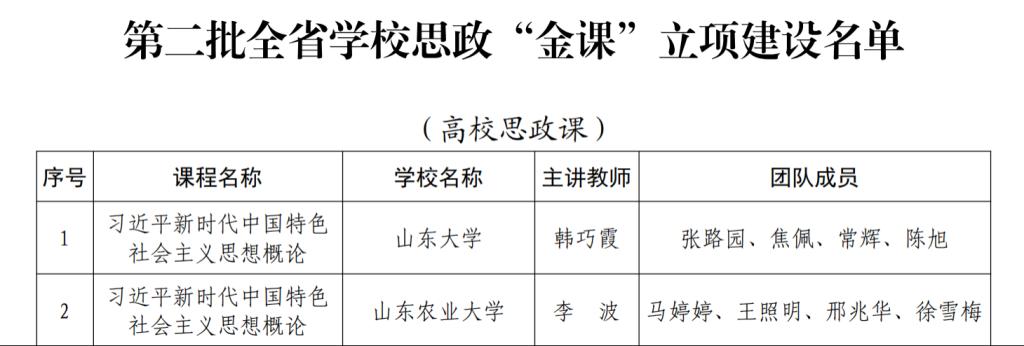 2月18日,山东省教育厅发布《关于第三批山东省一流本科课程认定结果的公示》,我院陈国庆教授主持申报的《中国近现代史纲要》课程获批线上线下混合式一流课程,刘金德副教授主持申报的《习近平新时代中国特色社会主义思想概论》课程获批线上课程,其中《习近平新时代中国特色社会主义思想概论》课程被推荐申报第三批国家一流本科课程。这是我院成立以来首次获批省级一流本科课程。