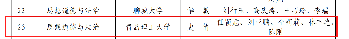 1月18日,山东省教育厅公布第二批全省学校思政“金课”认定结果,我院史倩教授主持申报的《思想道德与法治》课程成功获批。这是我校继《中国近现代史纲要》《毛泽东思想和中国特色社会主义理论体系概论》之后,获批的第3门省级思政“金课”。