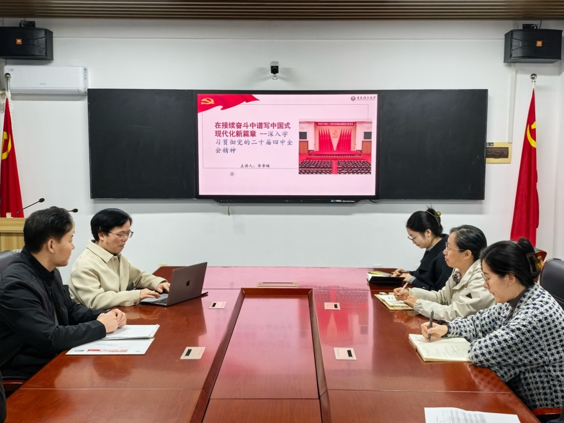 华章琳系统解读了党的二十届四中全会的重大意义和主要内容,重点围绕全会审议通过的《中共中央关于制定国民经济和社会发展第十四个五年规划和二〇三五年远景目标的建议》展开。他指出,党的二十届四中全会是在以中国式现代化全面推进强国建设、民族复兴伟业的关键时期召开的一次重要会议,为我们指明了前进方向。“十五五”规划建议则进一步深化了我们党对中国式现代化的认识,全面系统回答了新形势下如何深入推进中国式现代化这个时代课题。作为马克思主义理论工作者,我们要以时不我待的紧迫感和使命感,将全会精神转化为教书育人的实际行动。