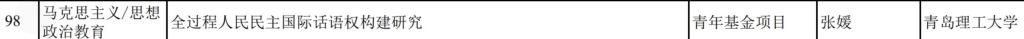 张媛申报的《全过程人民民主国际话语权构建研究》课题围绕全过程人民民主构建的内容、价值、意义等方面展开研究,认为全过程人民民主话语体系的立足点是中国特色社会主义伟大实践,具有多层次的丰富内容。该课题研究对于向国际社会传播真实、立体、全面的中国民主形象具有重要意义。