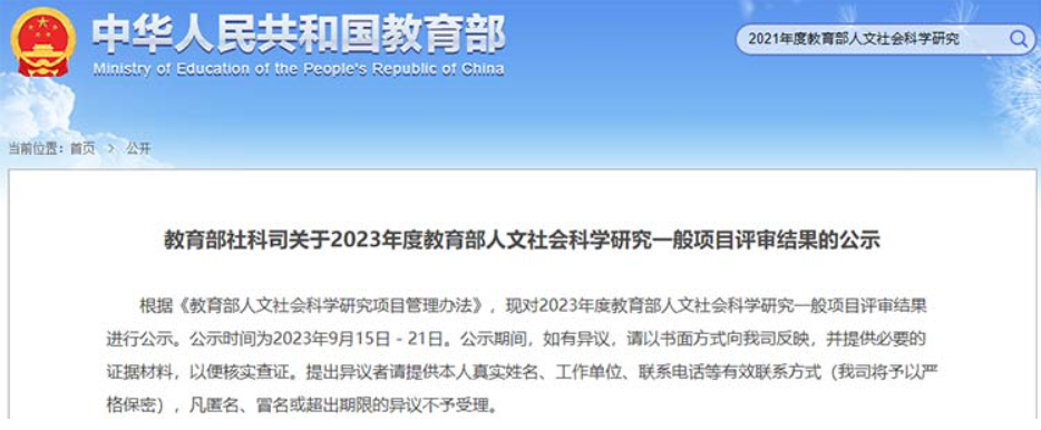 教育部人文社会科学研究项目由教育部面向全国普通高等学校设立,是仅次于国家社会科学基金项目的人文社科类高层次项目,旨在通过高等学校哲学社会科学繁荣计划专项资金的支持,加快高校构建中国特色哲学社会科学学科体系、学术体系和话语体系,推动面向2035高校哲学社会科学高质量发展。