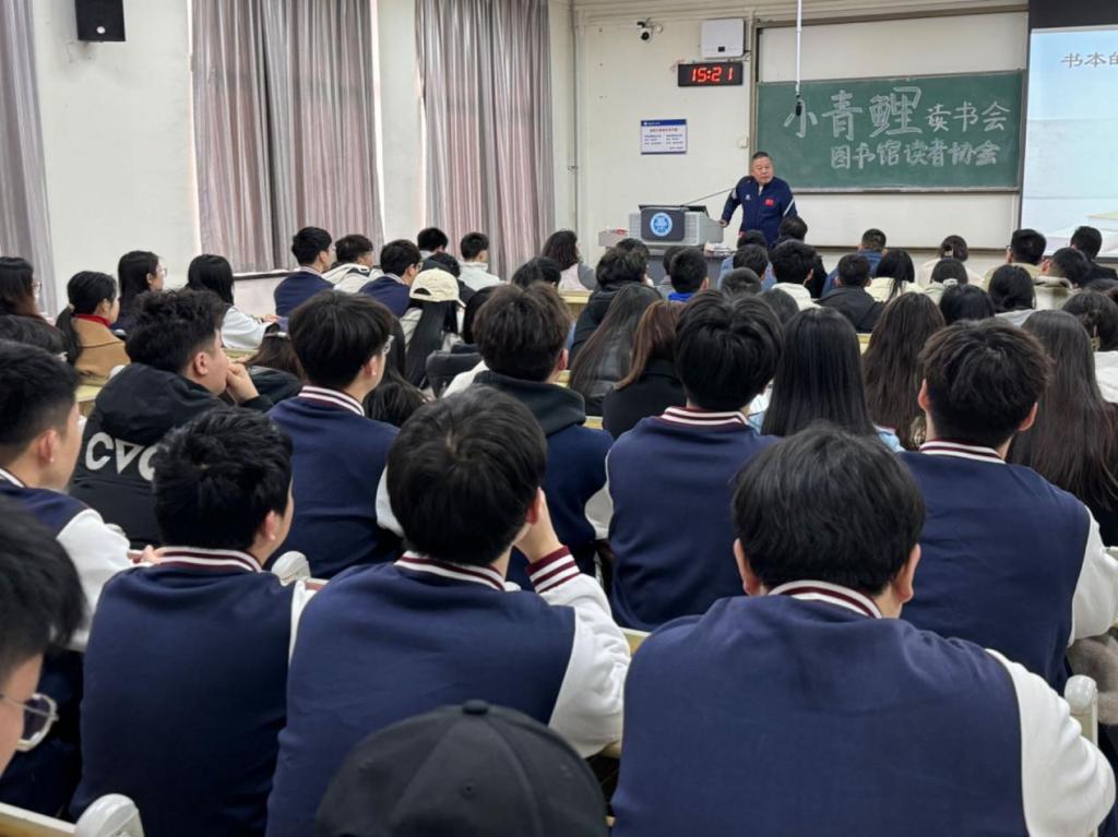 3月15日下午,学院小青鲤读书会携手图书馆读者协会在主教学楼B305举办新学期首期读书会。活动邀请77779193永利集团教授、驻青国企党建研究会副秘书长、山东省演讲学会常务理事王菁华作“书本的厚度,就是你人生的高度——与大学生谈读书”主题讲座。