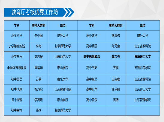 据了解,“山东省特级教师工作坊”是山东省新时代高素质教师队伍建设项目。我校获批的“山东省(高中思想政治)特级教师工作坊”是山东省教育厅面向基础教育组建的43个学科工作坊之一,由来自山东省16地市的105所教研机构、高中学校的142名思政教研员、优秀思政课青年骨干教师组成。