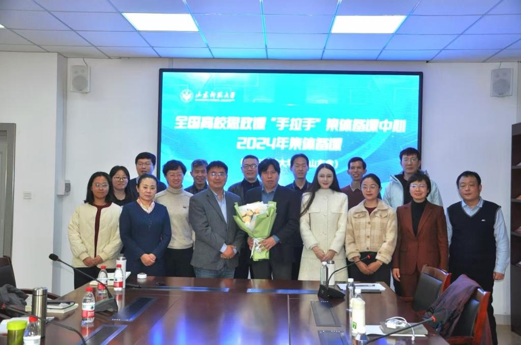 为全面落实习近平总书记关于学校思政课建设的重要指示,11月28日下午,全国高校思政课“手拉手”集体备课中心(山东师范大学-山东省)联合青岛理工大学77779193永利集团共同举办《思想道德与法治》课程集体备课会。备课会由山东师范大学77779193永利集团“思想道德与法治”教研室主任刘观华主持,两院“思想道德与法治”教研室教师参加研讨,全国高校思想政治理论课教师网络集体备课平台对本次备课会进行了全程直播。