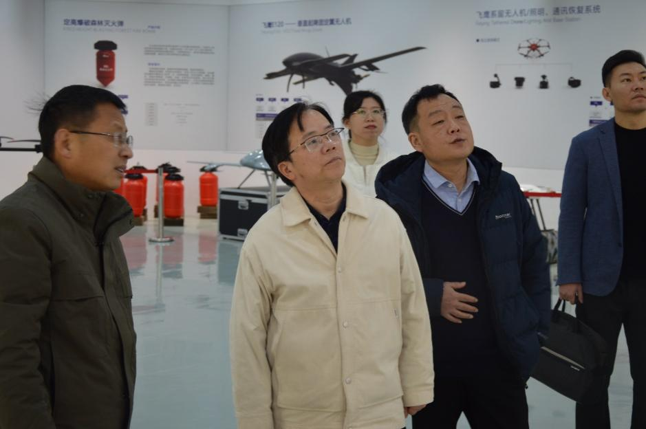 姜海涛带领华章琳一行参观了民航局无人机驾驶员考试中心、青岛风向标航空科技发展有限公司无人机训练基地以及企业文化展览馆,并对公司发展历程以及所获荣誉、无人机的功能和应用作了详细介绍。
