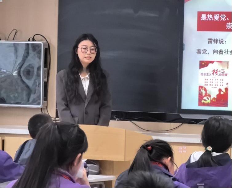 互动环节中,同学们就“如何在日常生活中践行雷锋精神”等问题与宣讲团进行深入交流。宣讲团成员鼓励同学们从身边小事做起,用实际行动传承和弘扬雷锋精神。同学们纷纷表示,通过此次宣讲对雷锋精神有了更深刻地理解,并表明要在今后的学习和生活中践行雷锋精神。青・理宣讲团研究生负责人查怡表示:此次宣讲活动不仅使团队成员深化了对雷锋精神的理解,更在实践中积累了开展中小学宣讲活动的宝贵经验。