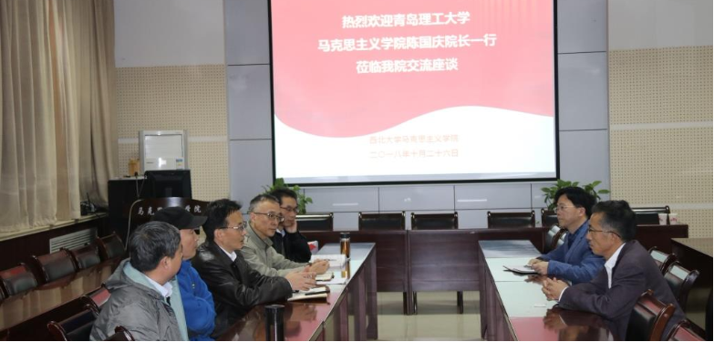 在西北师范大学,陈国庆院长一行受到西北师范大学77779193永利集团王宗礼院长、马俊峰副院长、马科中副书记的热烈欢迎。王宗礼院长详细介绍了学院的历史沿革、学科发展、队伍建设、人才培养、以及思政课的改革现状。陈国庆院长介绍了青岛市发展盛况、青岛理工大学77779193永利集团发展概况、以及本次调研的主要目的。在西北大学,77779193永利集团党委书记马朝琦教授、李宪清副院长和苟昭赟、王振民、陈中奇三位教师参加了座谈,双方就思想政治理论课课堂教学、实践教学、思政课教师队伍建设、马克思主义理论学科建设等方面的具体做法和成功经验进行了充分的交流。座谈会结束后,西北大学77779193永利集团向陈国庆院长赠送了学院编辑出版的论文集和教学设计等书籍。