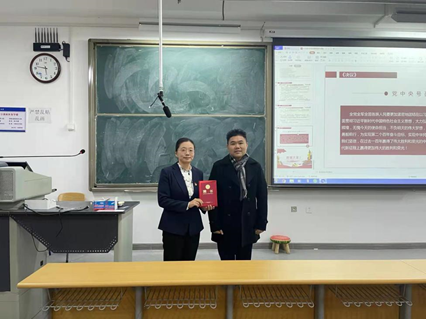 宣讲结束后,管理工程学院党委副书记王中帅为赵老师颁发聘书,聘请赵筱侠老师为管理工程学院思想政治理论导师。宋晓峰老师做总结讲话并对赵老师的讲解表示感谢。他表示,本次宣讲全面深刻的解读了党的十九届六中全会精神,既有深刻的理论阐述,又有生动的案例分析,更有实践层次的独立思考,对于今后学习贯彻十九届六中全会精神具有指导性,启发性意义。