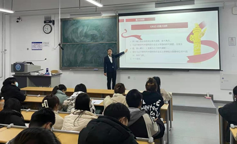 同学们在认真聆听后深受启发、备受鼓舞,并结合自身实际分享了在学习生活中如何贯彻落实党的十九届六中全会精神。最后,赵老师勉励大家要从党的百年奋斗历史进程中汲取开创未来的智慧和力量,勿忘昨天的苦难辉煌,无愧今天的使命担当,不负明天的伟大梦想,以史为鉴,开创未来,埋头苦干、勇毅前行,为实现第二个百年奋斗目标、实现中华民族伟大复兴的中国梦而不懈奋斗。