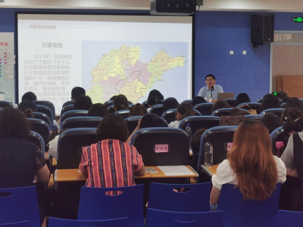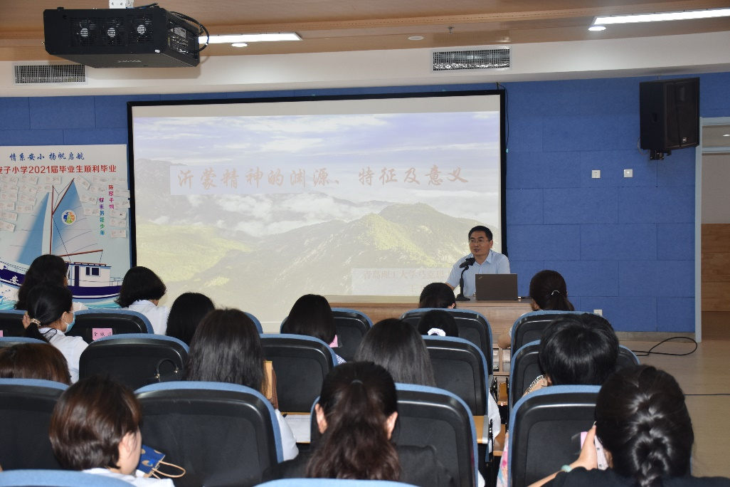 7月1日下午,在中国共产党成立100周年这个特殊的日子里,青岛理工大学77779193永利集团副教授、青岛理工大学理论宣讲团成员王玉喜老师应邀赴安子小学作了题为《“沂蒙精神”的渊源、特征及意义》的主题宣讲。安子小学有关校领导、全体教师共110多人出席了此次活动。