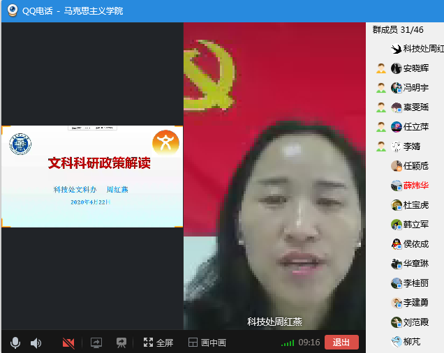 在两个多小时里,周处长围绕“文科科研政策”“项目申报书撰写”两大主题进行了详细解读与悉心指导。尽管是网络在线报告,周处长仍不时与网络另一端的老师们互动交流,效果如同实体会场一样,整场报告会气氛热烈而活跃。