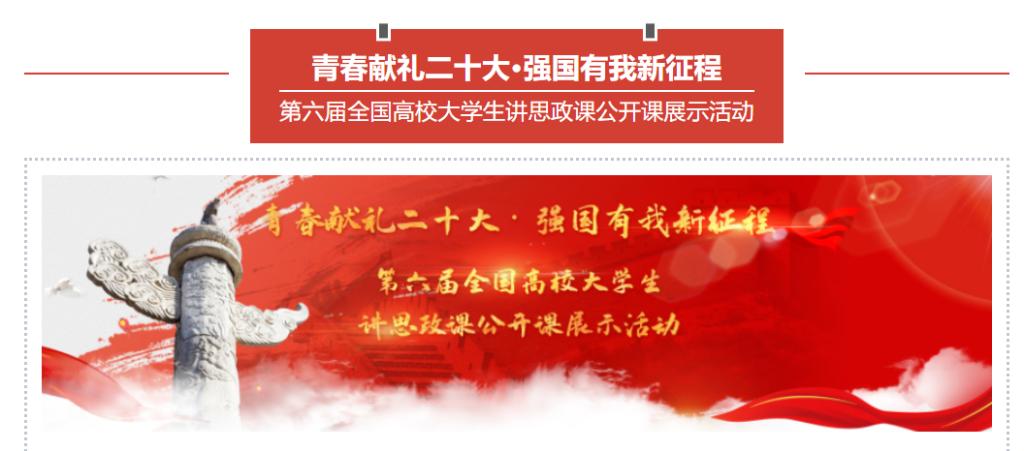 “青春献礼二十大·强国有我新征程”——第六届全国高校大学生讲思政课公开课展示活动自2022年5月启动,历时11个月。活动鼓励支持学校思政课教师在开展实践教学过程中,指导大学生组建团队,围绕思政课程中的有关章节或专题进行教学设计,以“青春献礼二十大•强国有我新征程”为主题开展教学,引导大学生深刻理解中国共产党为什么能、马克思主义为什么行、中国特色社会主义为什么好,深化对思政课教学内容的认识和思考,展现新时代大学生的马克思主义理论素养和精神风貌。