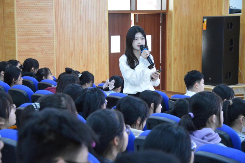 随后,蒋维以青年志愿服务为主线,向同学们分享了“全国优秀共青团员”任欢在平凡岗位上奉献自己的光和热的故事,并结合党的二十大精神深情讲述了新时代学习和践行雷锋精神的重要意义和历史使命,引导同学们思考新时达青年的责任与担当。最后,她呼吁同学们传承和发扬雷锋精神和“奉献、友爱、互助、进步”的志愿服务精神,接续书写新时代的“雷锋故事”。