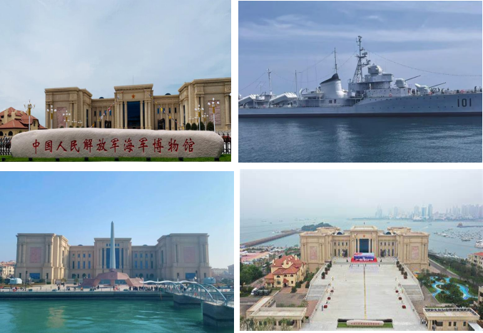 中国人民解放军海军博物馆,位于山东省青岛市市南区莱阳路8号,东邻鲁迅公园,西接小青岛公园,与栈桥遥相呼应,南濒一望无际的大海,北面是著名景点青岛信号山公园,陆地面积141.1亩,海域面积225亩,是中国唯一一座反映中国海军发展的军事博物馆。截至2021年底,中国人民解放军海军博物馆馆藏文物共计10000余件。中国人民解放军海军博物馆先后被评定为山东省国防教育基地、全国国防教育示范基地、全国爱国主义教育示范基地、全国首批百个红色旅游经典景区、国家一级博物馆、山东省退役军人思想政治教育基地。