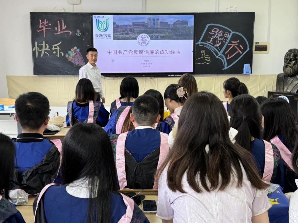 此次廉洁教育讲座,不仅为在座的毕业学子提供了深入的思考,也为社会廉洁建设注入了新的活力。通过此次廉洁教育,期待作为新时代青年的我们能够秉承原则,弘扬廉洁美德。以廉洁之风,涵养时代新风,以廉洁之心,树文化之风。