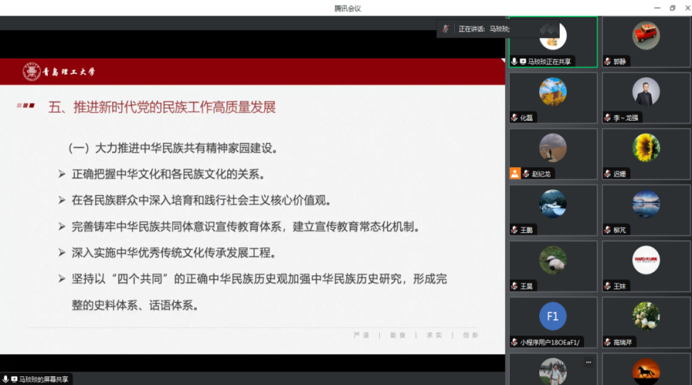 李龙强副院长做总结发言,要求学院师生必须自觉贯彻学习党的民族宗教政策法规知识,牢固树立马克思主义宗教观,进一步铸牢中华民族共同体意识。