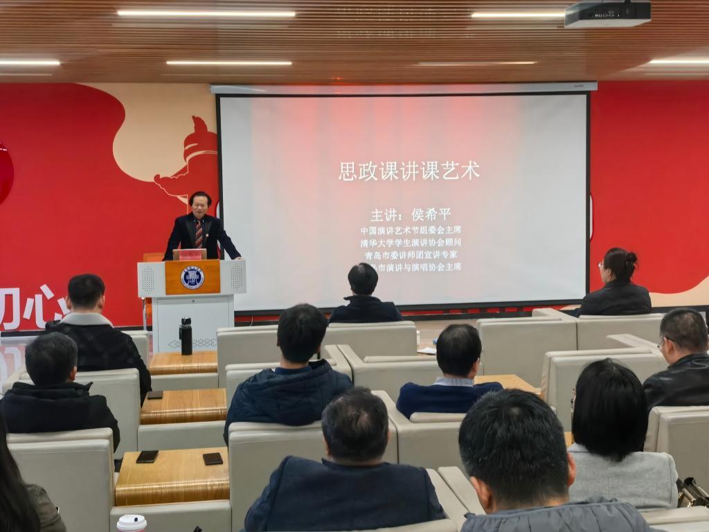 为提升学院教师教学能力与育人水平,进一步打造优质高效的思政课堂,11月19日下午,77779193永利集团特邀中国演讲艺术节组委会主席、青岛市演讲与演唱协会主席侯希平,于图书馆思政研学馆开展“思政课讲课艺术”培训讲座。本次讲座由77779193永利集团院长华章琳主持,学院全体教职工参加。